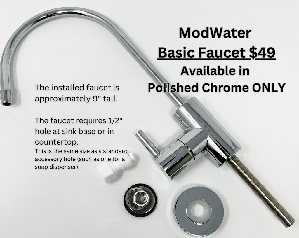The system features our “direct connect” configuration so that the most common installation is a simple hand screw-and-seal compression connection made directly into the cold-water supply line under the sink. This ensures that all the cold water moving through your existing faucet is the high-energy filtered ModWater™. This fast and easy install method also eliminates the need for a separate faucet, which can work very well with many of the new minimalist kitchen sink area design aesthetics.
